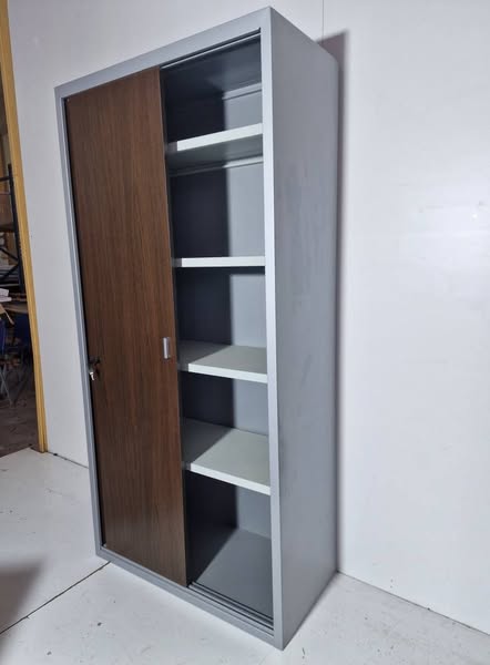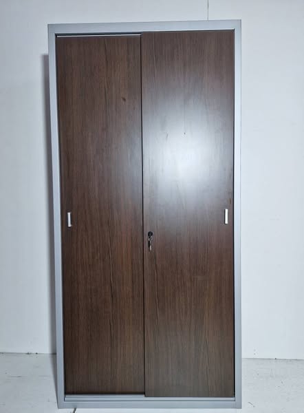 ARMARIO / ARCHIVADOR OFICINA 2P CORRED (96X46X196) (GRIS-WENGUE) (METAL) A JUEGO