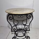 MESA BAR / JARDIN / TERRAZA (70CM D) (81CM ALTO) (MARMOL/FORJA NEGRA)