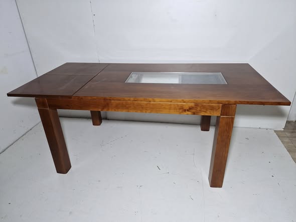 MESA COMEDOR (140X90) (EXT +50CM) (76CM ALTO) (AVELLANA / 1 CRISTAL)