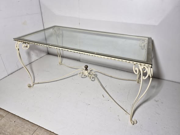 MESA COMEDOR (150X80) (76CM ALTO) (FORJA BEIG / TAPA DE CRISTAL)