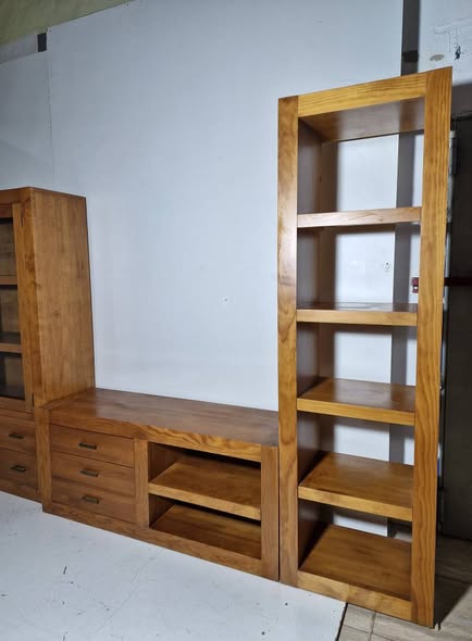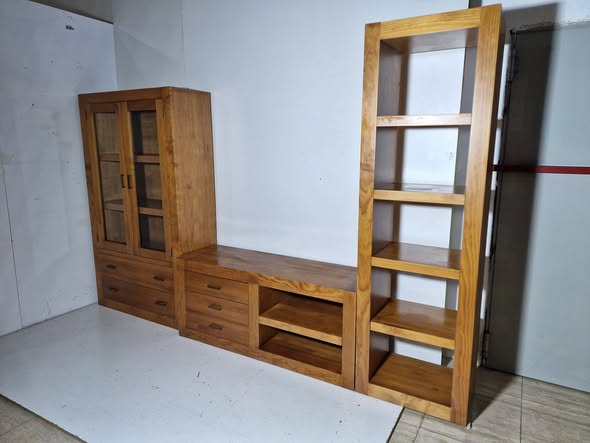 MODULAR SALON 3PIEZAS (305X40X200) (PINO) -Vitrina105cm -Mueble TV 140cm -Columna 60cm