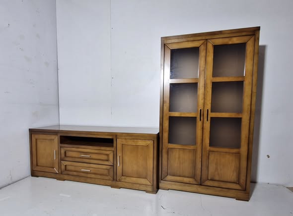 MUEBLE / MODULAR DE SALON (231CM) (BAJO TV 151X54X59+ VITRINA 80X40X150) (MIEL OSC)
