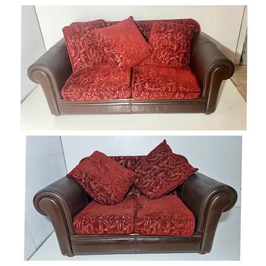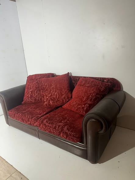 SOFA 3 PLAZAS (200X95X85) (POLIPIEL MARRON / TAPIZADO GRANATE)