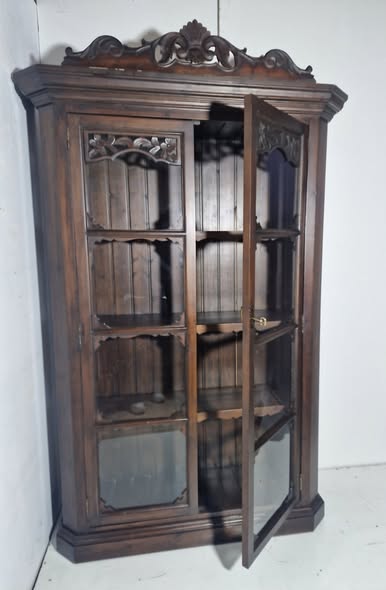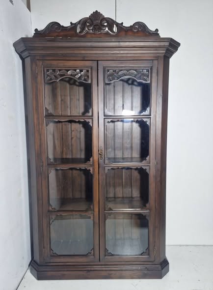 VITRINA 2P CRISTAL (140X45X220) (NOGAL OSC) (TALLADA)